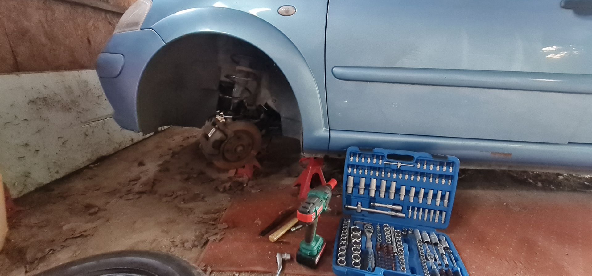 Akkor itt vannak az ígért képek az autószerelésről. Tehát a Citroen ablakát azért kellett betörnöm mert a zár nem volt jó az akksi pedig lemerült. Így kinyitni se tudtam a motorháztetőt, hogy feltöltsem. Szóval ez olcsó volt a bontóban, alig 5000 forint ennyiért nem jött volna ki egy zárszerelő kinyitni a kocsit. Az üveget természetesen én magam szereltem be. A nehezebb ügy az eltört rugó volt. Ehhez speciális rugóösszehúzó célszerszám kell ami nekem természetesen van, de a bontóban azt mondták jobb ha az egész gólyalábat cserélem ki a teleszkóppal együtt. Így nem kell a rugót is kiszedni. A teleszkóp kiszedéséhez viszont ettől függetlenül azért az egész futóművet le kell választani róla és 20 éve meghúzott csavarokkal ez nem egyszerű. De sikerült a Doki közvetlen aszisztenciájával :) Így tehát a kocsi kész. Teljesen működőképes és így be is tudtam adni egy kereskedésbe. Előtte persze lemostam és kiporszívóztam. Megveszik hamar szerintetek?